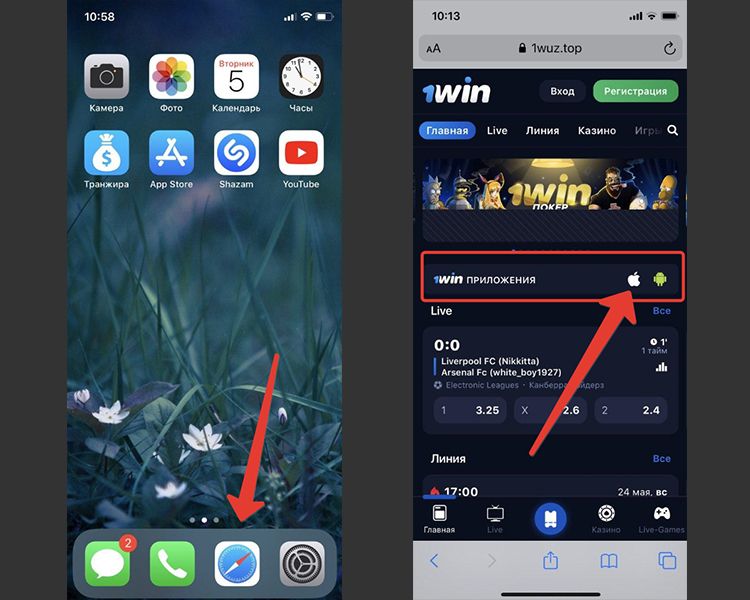 Используйте мобильный браузер, чтобы перейти на официальный сайт игрового клуба 1win с вашего смартфона.