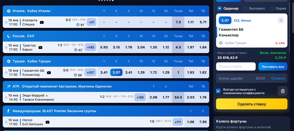 Букмекерская компания также предлагает множество акций и бонусов, включая приветственный бонус для новых клиентов.