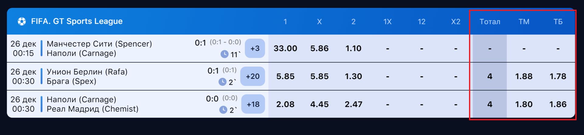 Важно учесть, что в подсчёт тотала включаются все голы, забитые за все время матча, включая дополнительное время и серии пенальти.