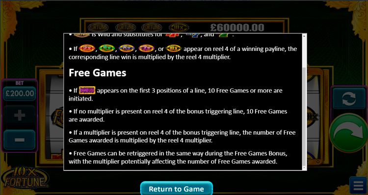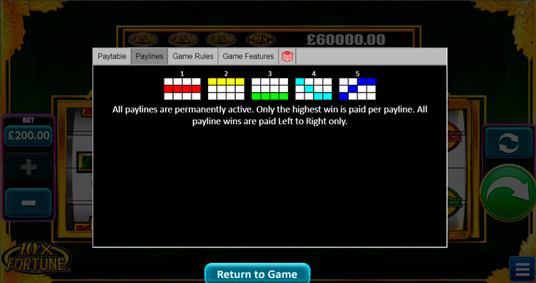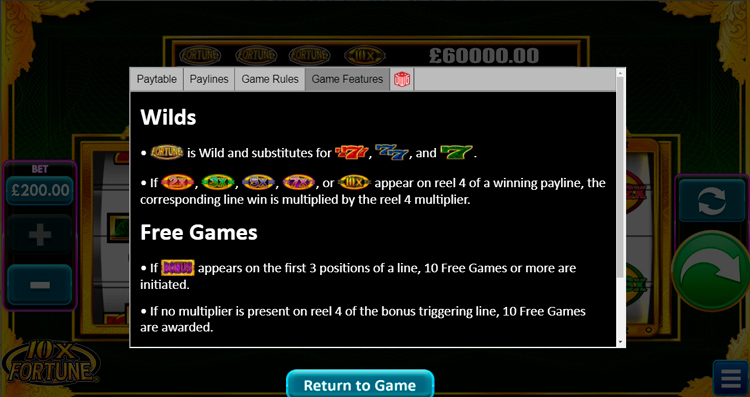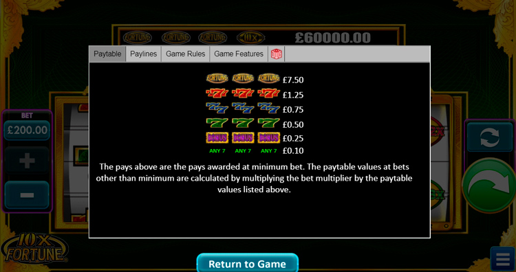 Таблица выплат 10x Fortune
