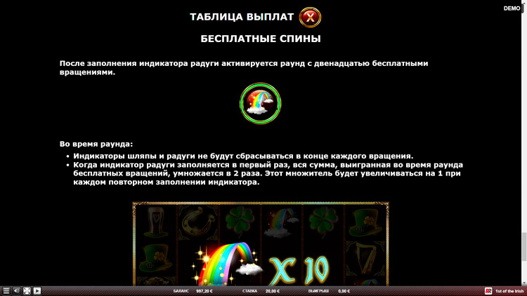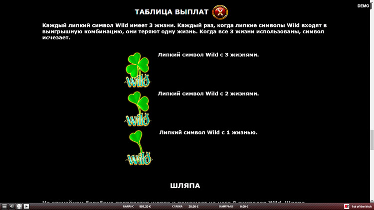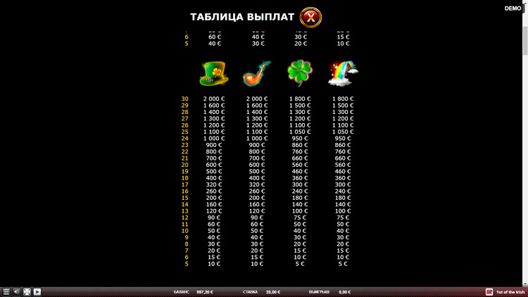 Таблица выплат 1st Of The Irish
