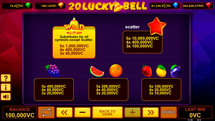 | Колокол (Wild) | 40 000 | 400 000 | 1 000 000 |