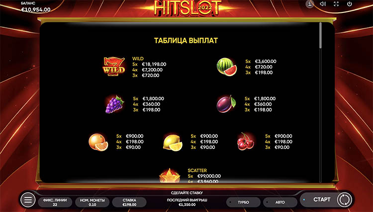 | Семерка (Wild) | 720 | 7200 | 18 198 |