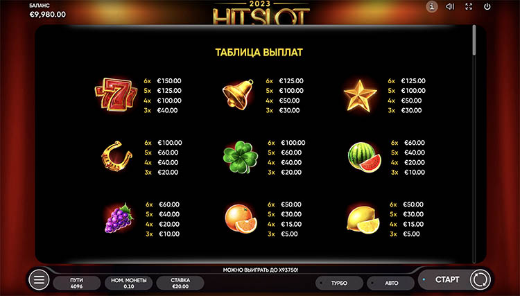 | Подкова, Клевер | 20 | 40 | 60 | 100 |