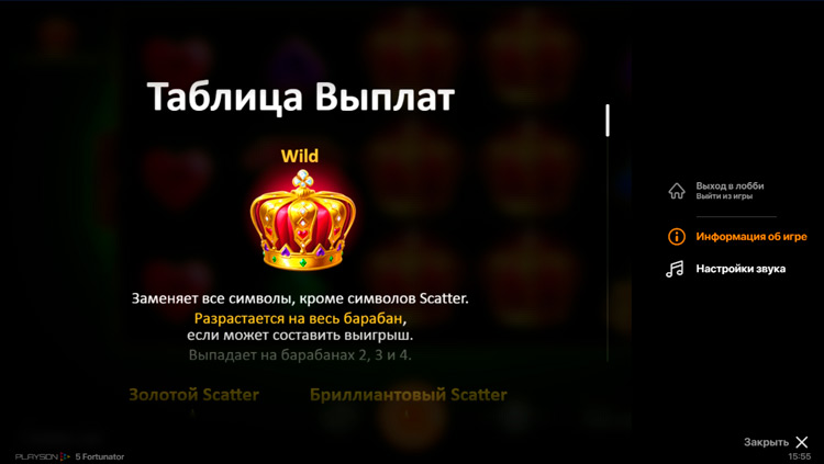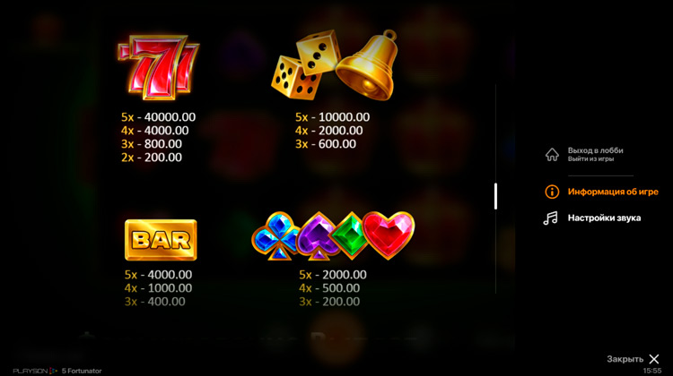 Таблица выплат 5 Fortunator