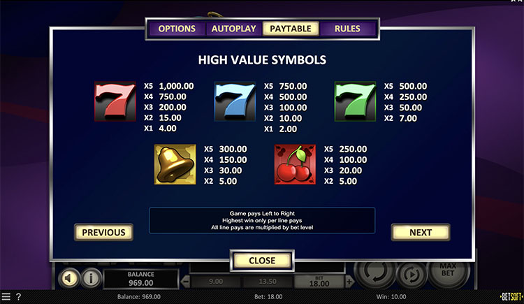 | Тройной Bar | - | - | 5 | 10 | 50 |