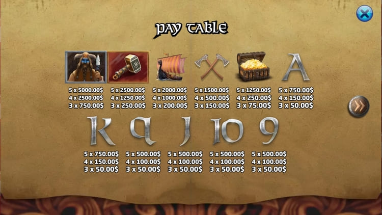 Таблица выплат Age Of Vikings