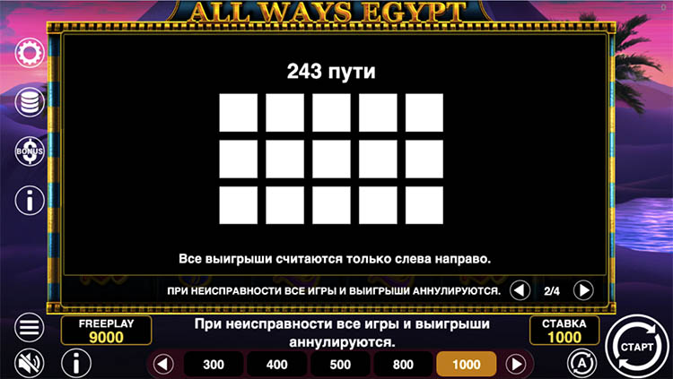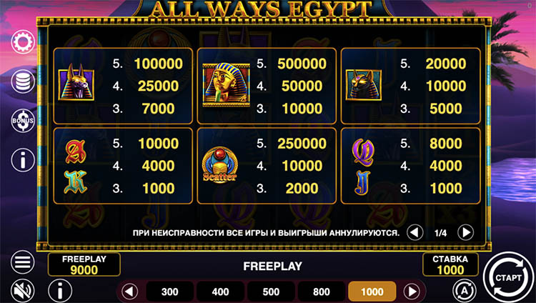 | Фараон | 10 000 | 50 000 | 500 000 |