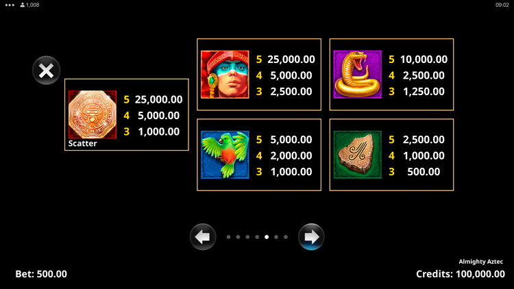 | Календарь ацтеков (Scatter) | 1000 | 5000 | 25 000 |