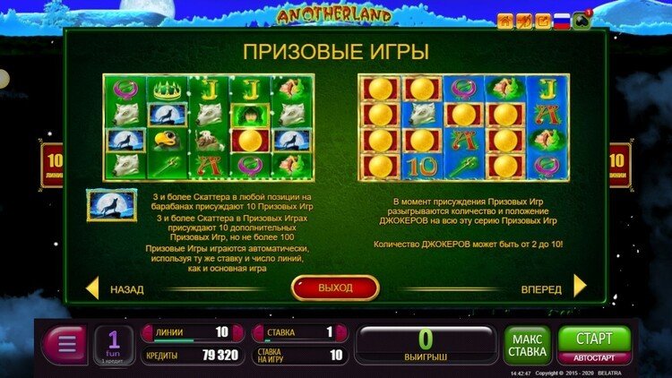 | Волк, который воет на луну (Scatter) | 1000 | 4000 | 100 000 |