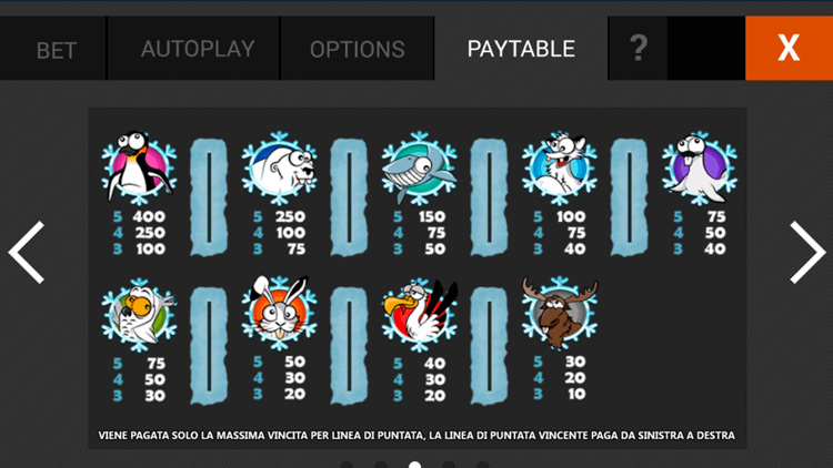 Таблица выплат Arctic Wild