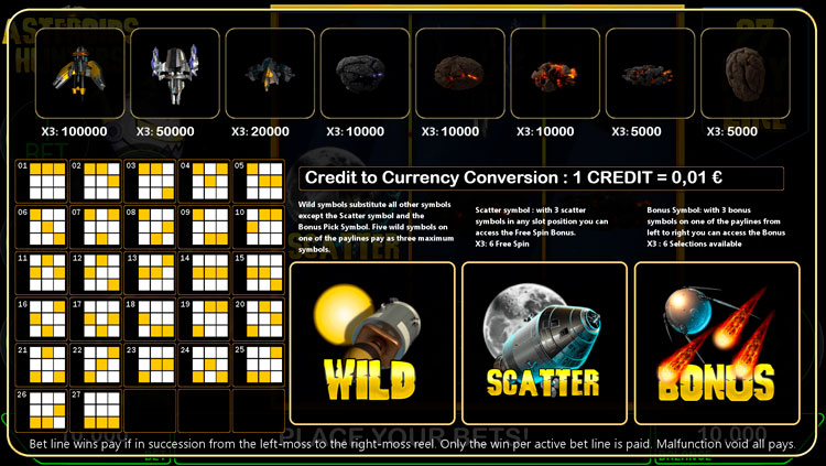 Таблица выплат Asteroid Hunter