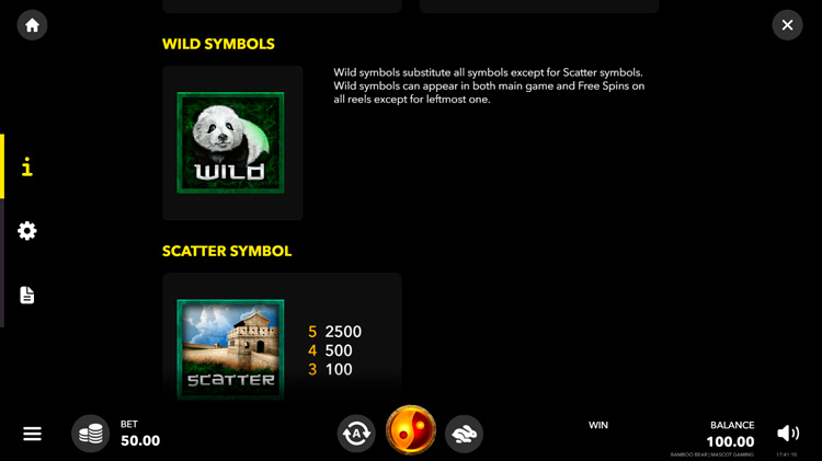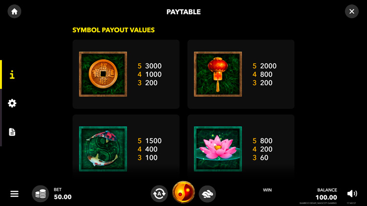 Таблица выплат Bamboo Bear