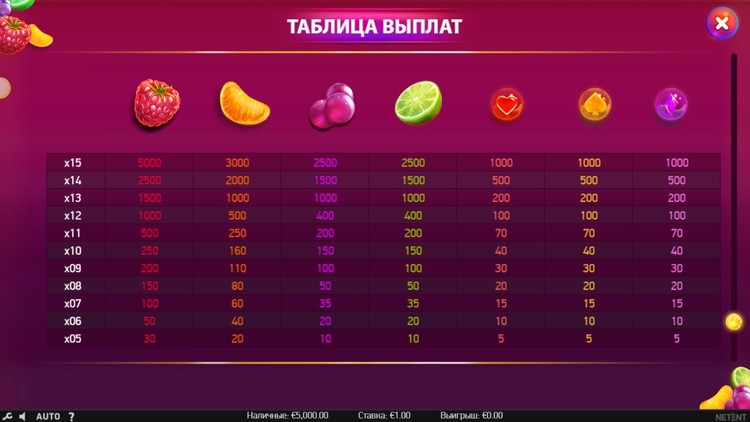 | Малина | 30 | 50 | 100 | 200 | 500 | 1 500 | 2 500 | 5 000 |