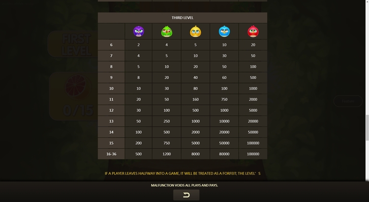 | Красная птица | 20 | 50 | 500 | 1 000 | 5 000 | 20 000 | 80 000 |