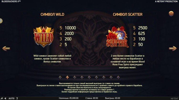 | Символ с надписью Scatter (Scatter) | 5 | 200 | 2 000 | 10 000 |