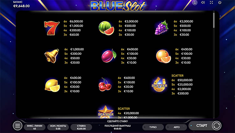 | Подкова (Scatter) | 200 | 2000 | 25 000 | 50 000 |