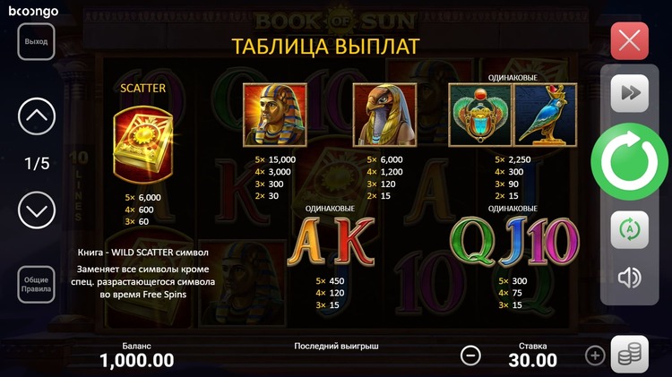 | Фараон | 30 | 300 | 3 000 | 15 000 |