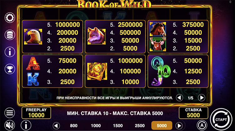 | Волк | 5000 | 50 000 | 500 000 | 2 500 000 |