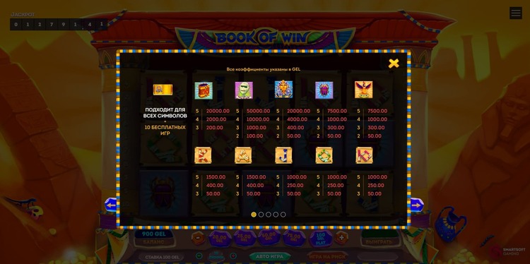 Таблица выплат Book Of Win