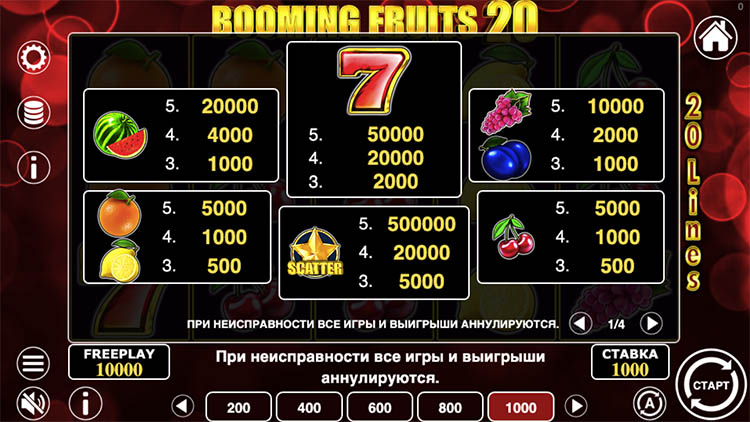 | Звезда (Scatter) | 5000 | 20 000 | 500 000 |