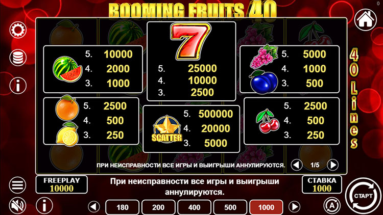 | Звезда (Scatter) | 5000 | 20 000 | 500 000 |