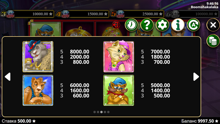 Таблица выплат Boomshakalaka