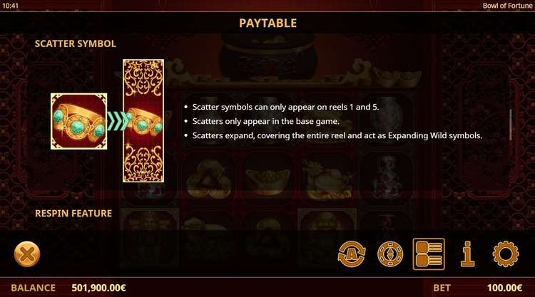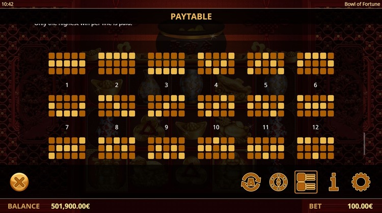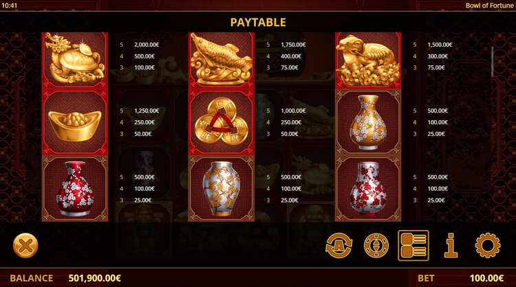 Таблица выплат Bowl of Fortune