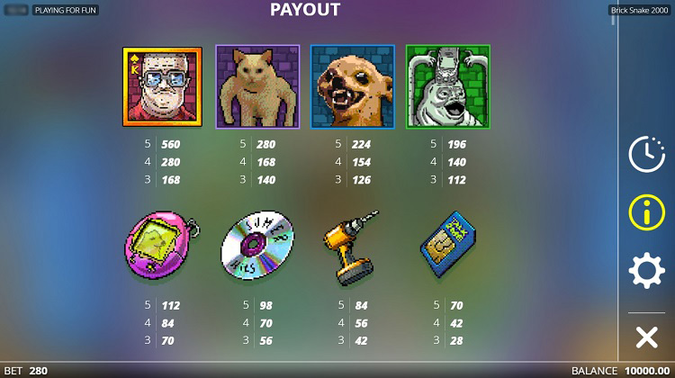 Таблица выплат Brick Snake 2000