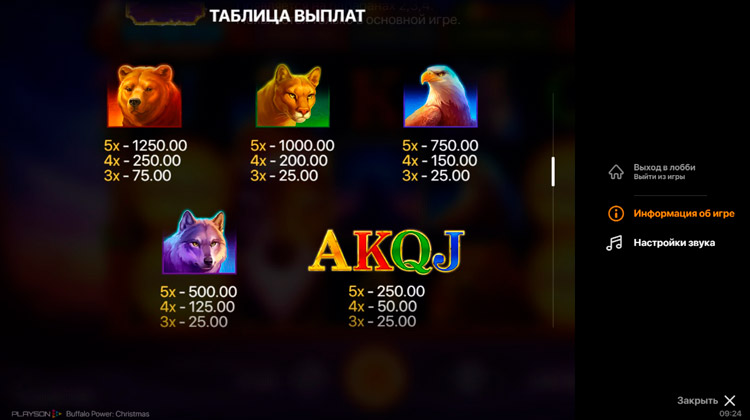 | Медведь, Буйвол (Wild) | - | - | 75 | 250 | 1250 |