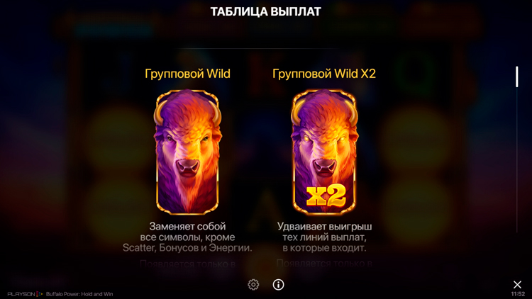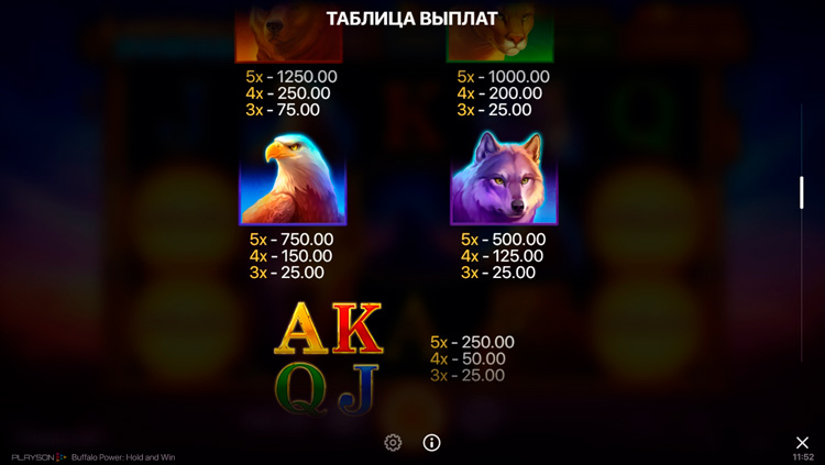 | Медведь, Буйвол (Wild) | - | - | 75 | 250 | 1 250 |