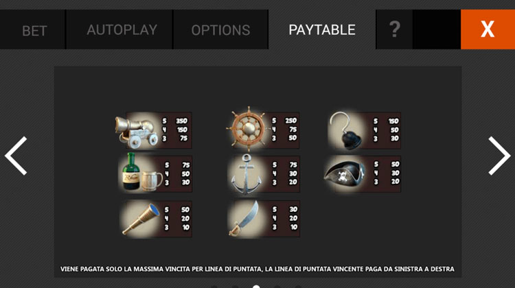 | Пиратский флаг (Scatter) | 10 | 30 | 75 |