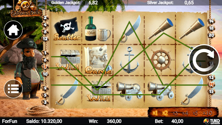 Таблица выплат Captain Jack