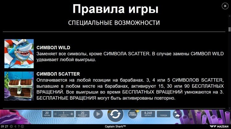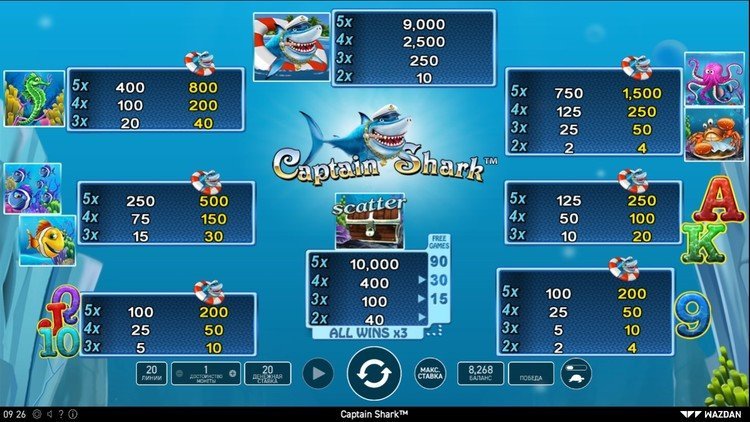| Капитан акула (Wild) | 10 | 250 | 2 500 | 9 000 |
