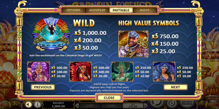 Таблица выплат Carnaval Forever
