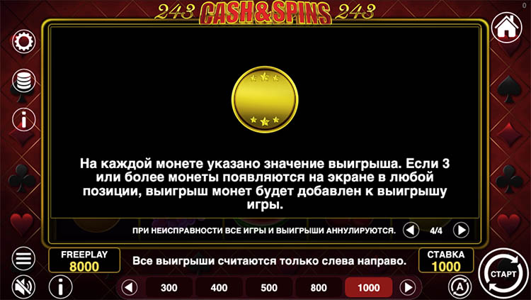 | Звезда (Scatter) | 2000 | 10 000 | 250 000 |