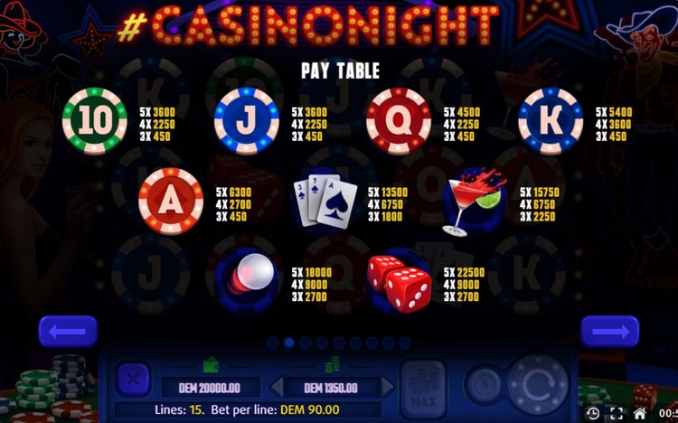 Таблица выплат Casino Night