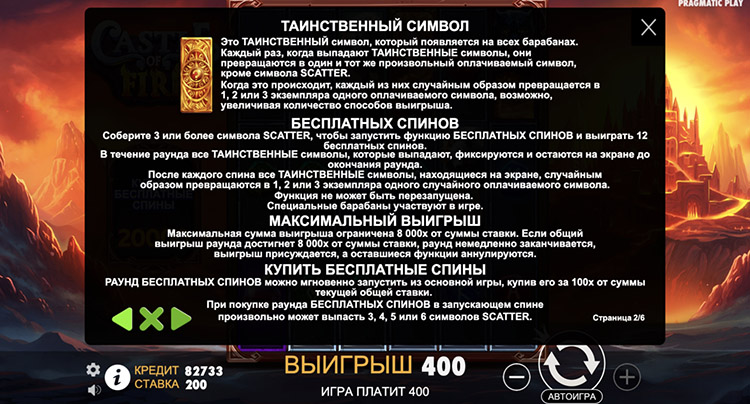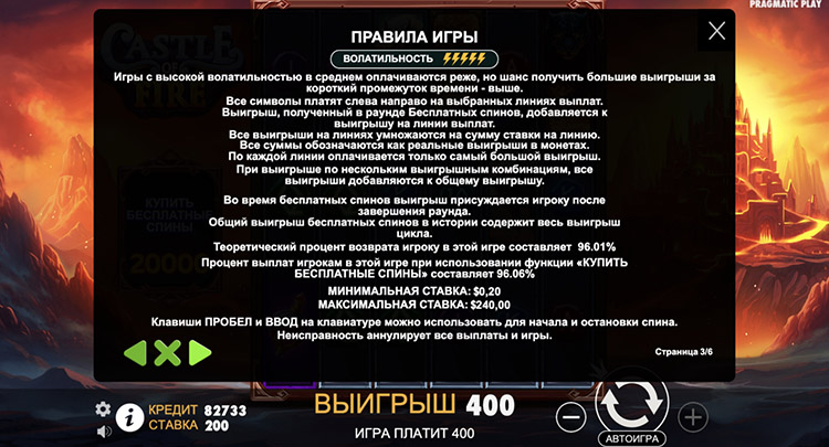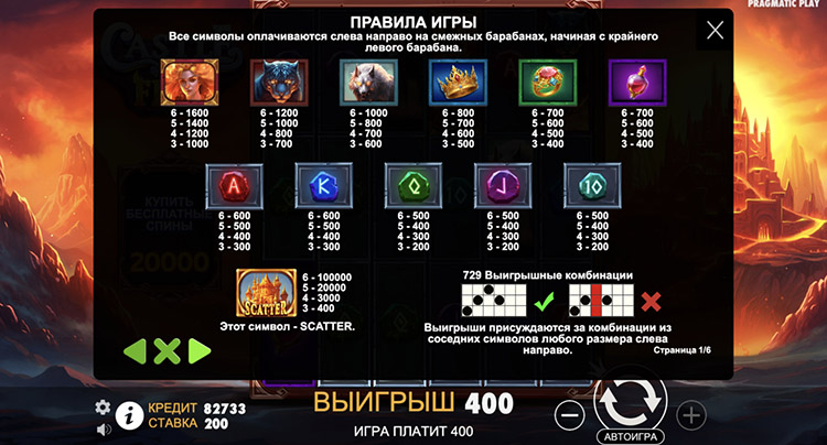 | Замок (Scatter) | 400 | 3000 | 20 000 | 100 000 |