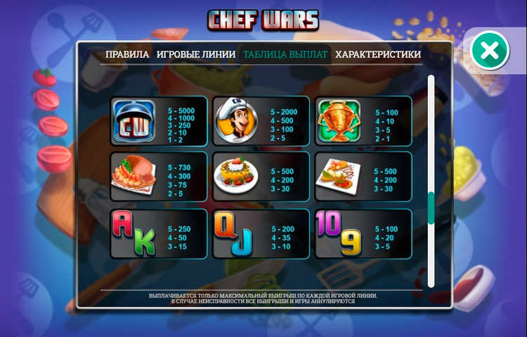 | Лого игры (Wild) | 2 | 10 | 250 | 1 000 | 5 000 |
