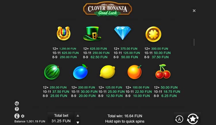 Таблица выплат Clover Bonanza
