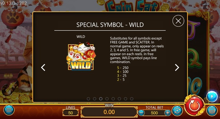 | Кот (Wild) | 5 | 25 | 100 | 250 |