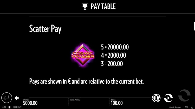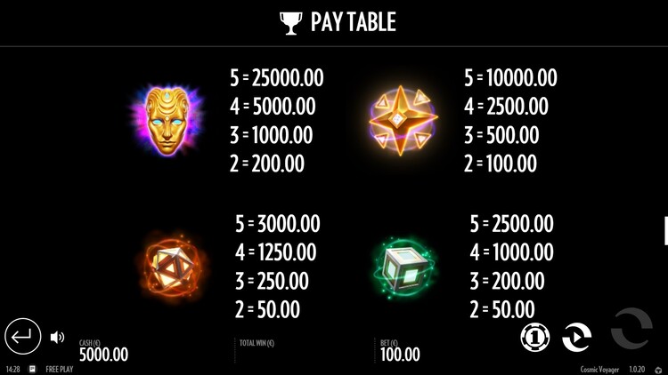 Таблица выплат Cosmic Voyager