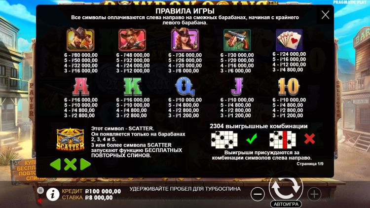 Таблица выплат Cowboy Coins