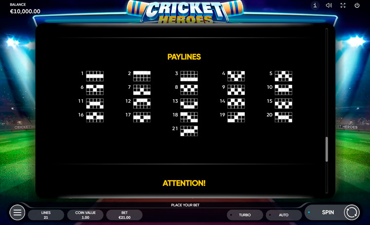 Таблица выплат Cricket Heroes
