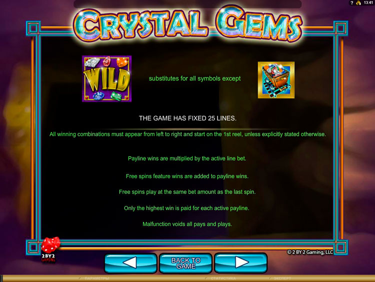 Таблица выплат Crystal Gems