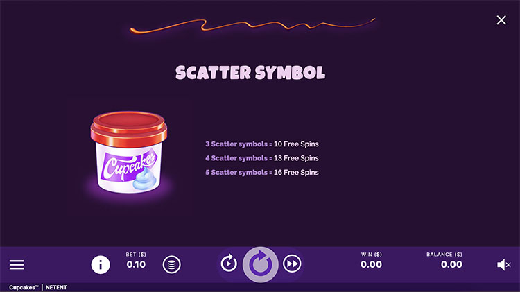 Таблица выплат Cupcakes