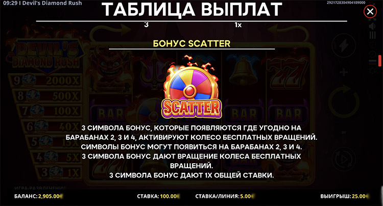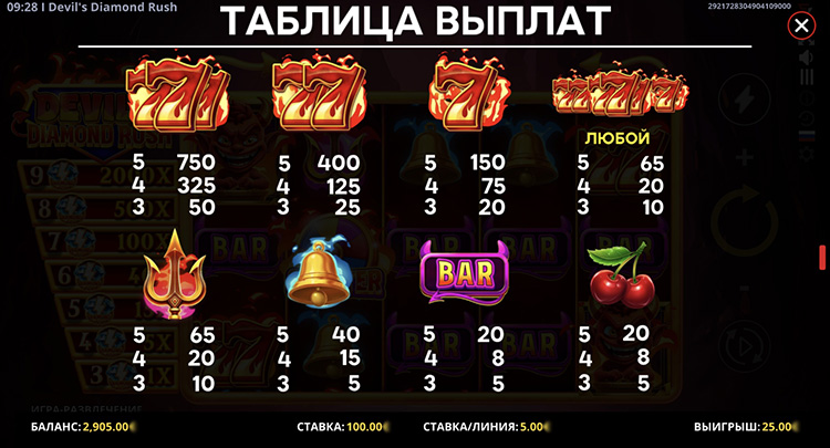 | Дьявол (Wild) | 125 | 500 | 2500 |