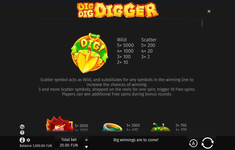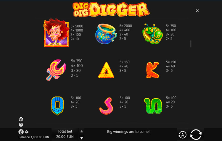 | Мужчина, Лопата (Wild) | 10 | 100 | 1000 | 5000 |