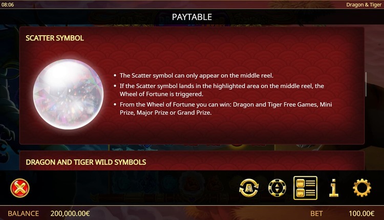 Таблица выплат Dragon & Tiger