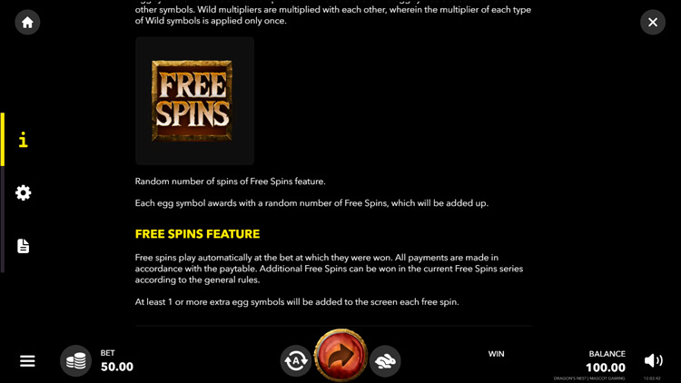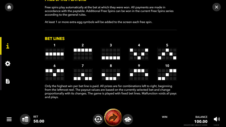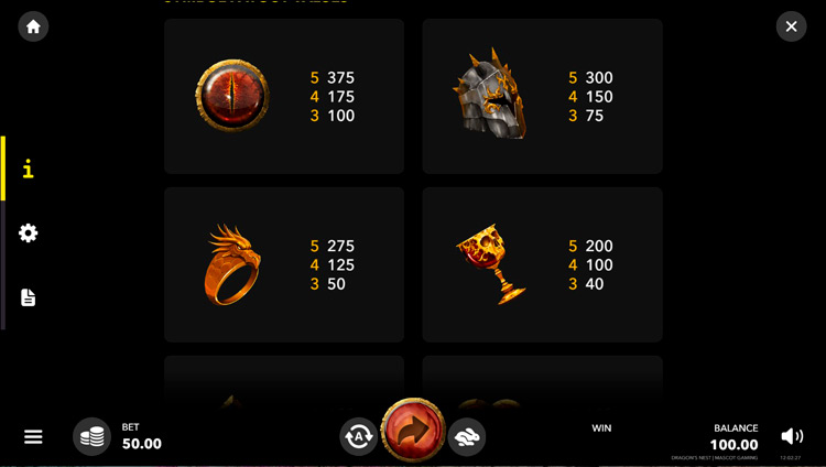 Таблица выплат Dragons Nest
